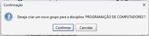 Será apresentada uma mensagem de confirmação, se deseja criar o grupo, para dar continuidade clique em Confirmar.