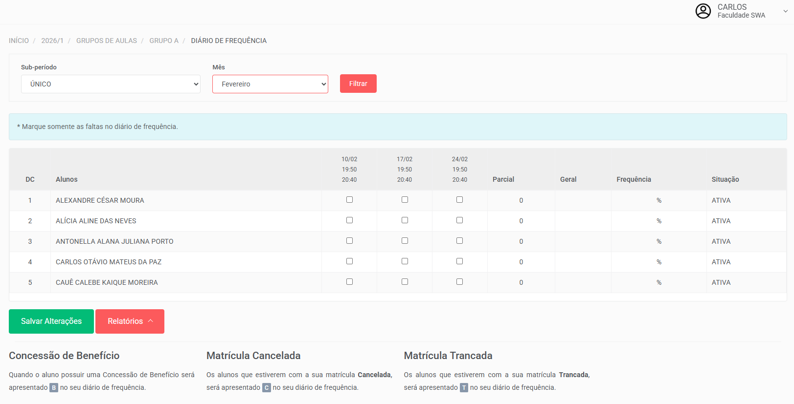 Diário de Frequência;