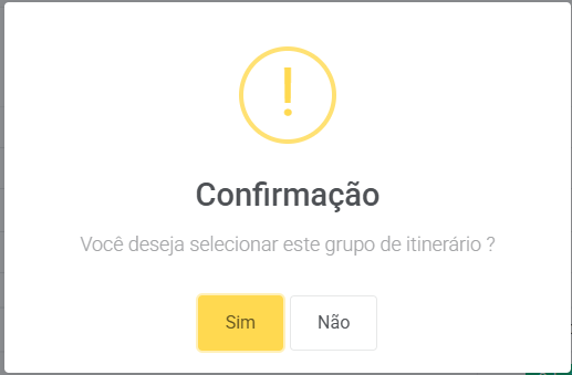 Ao selecionar um dos grupos será apresentada uma mensagem de confirmação.