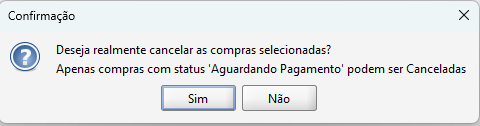 Será apresentada uma mensagem especificando que apenas compras com o status Aguardando Pagamento podem ser canceladas.