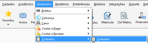 Acesse o menu Financeiro, vá até Contratos e clique em Contratos.
