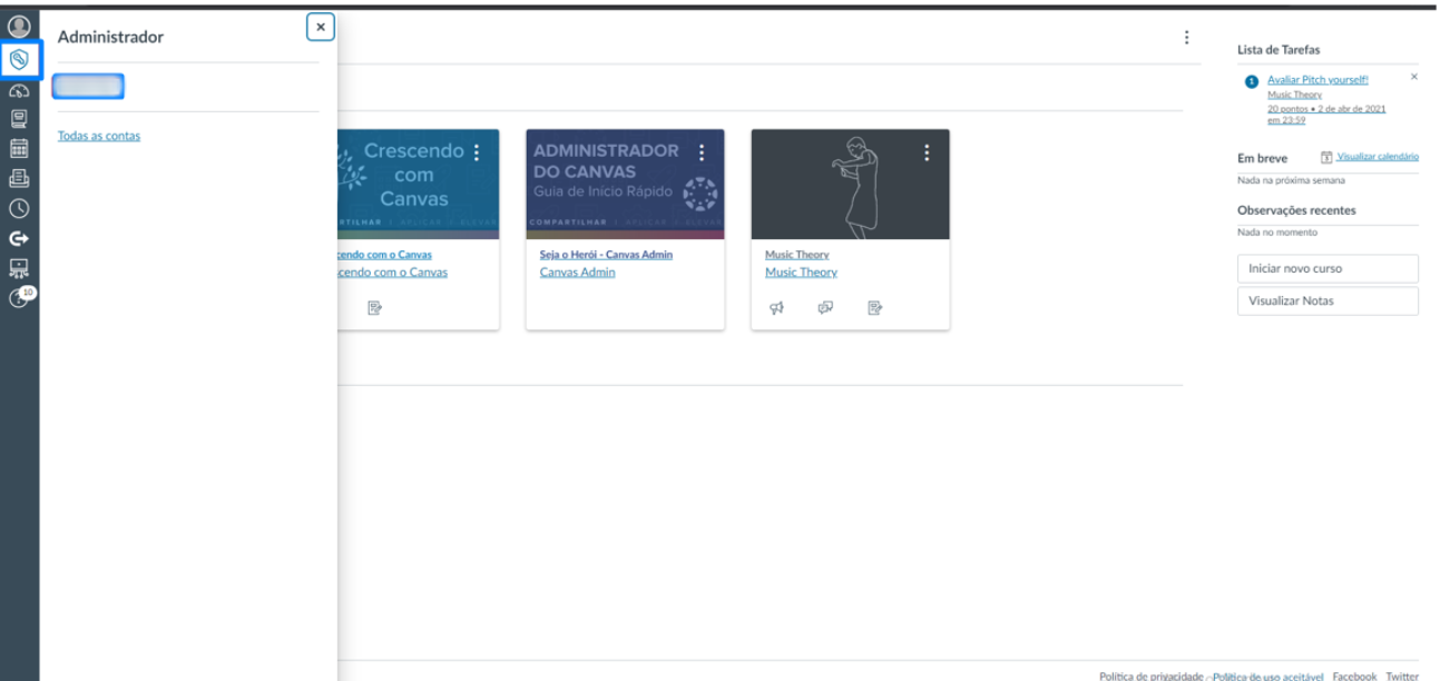 Account Id: Identificador numérico da conta institucional dentro do Canvas. É utilizado como referência para cadastrar cursos, usuários e matrículas via API.