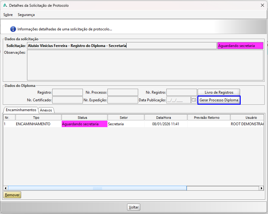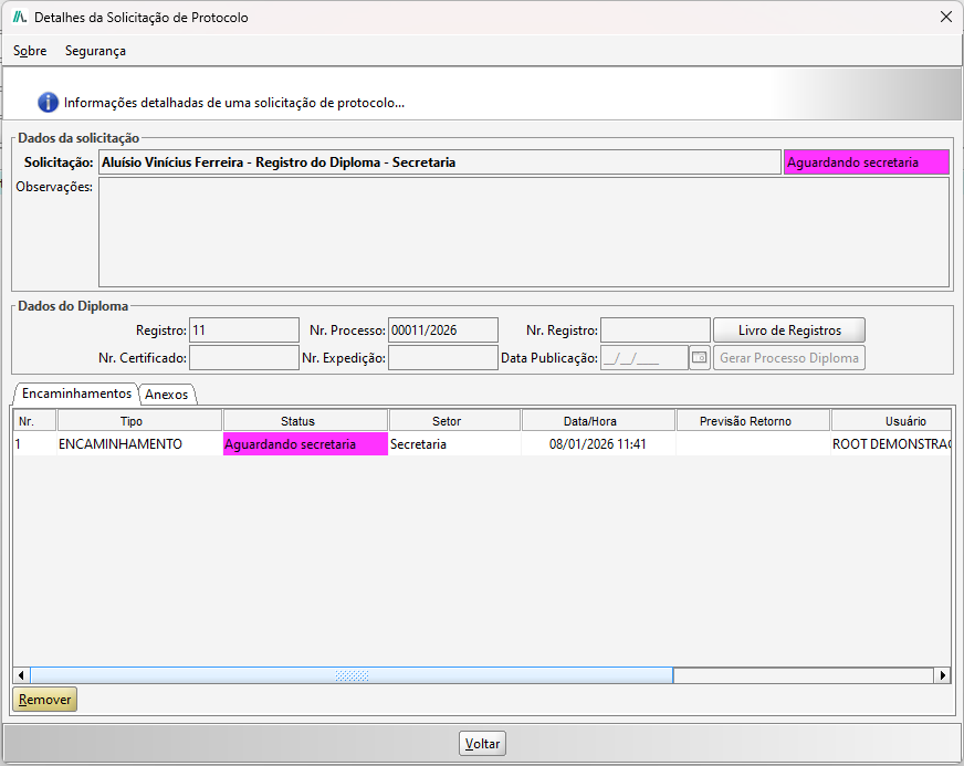 DICA: Caso deseja remover um protocolo, o mesmo só será possível se remover primeiramente todos os anexos e encaminhamentos
