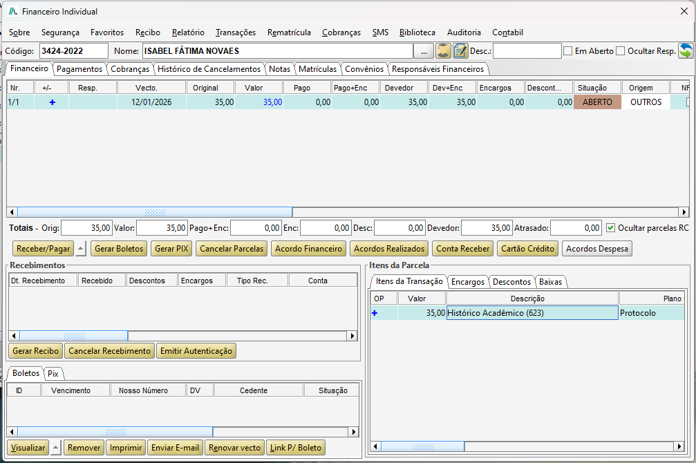 14. FINANCEIRO INDIVIDUAL E DADOS DO ALUNO