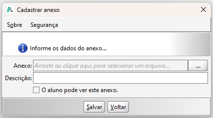 Na Aba de Anexos, é possível que a instituição realize o download dos arquivos anexados na solicitação. Também é possível adicionar novos arquivos e definir se o aluno pode, ou não, visualizar os anexos.