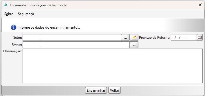 - Obrigatório informar a observação no encaminhamento da solicitação: Ao realizar o encaminhamento de uma solicitação de protocolo para outro setor, é obrigatório informar uma observação.