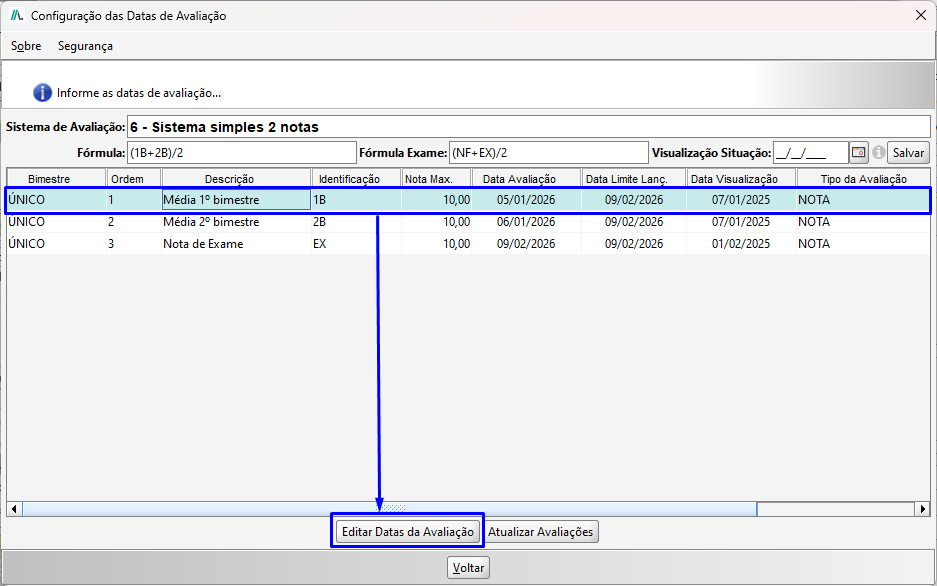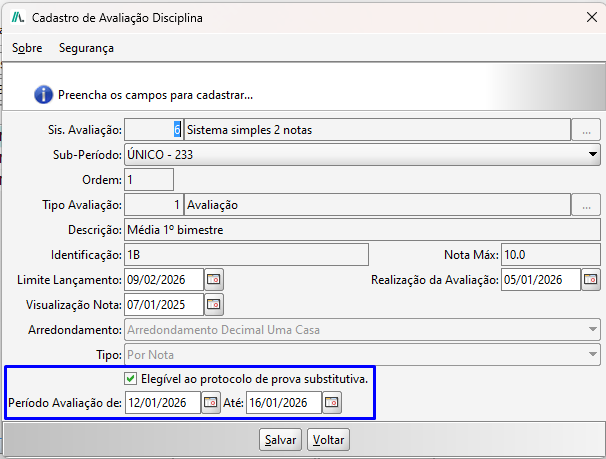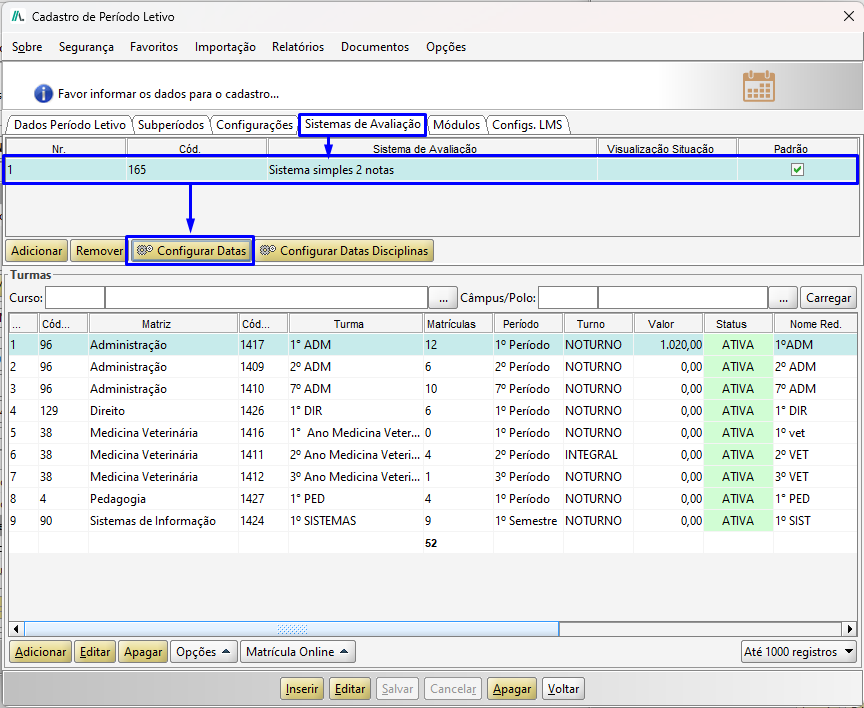 - Período Letivo;