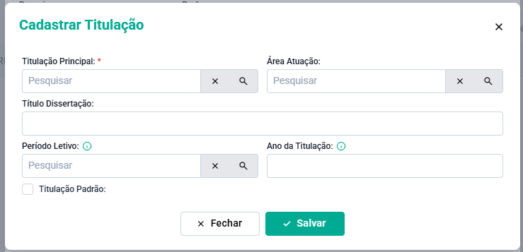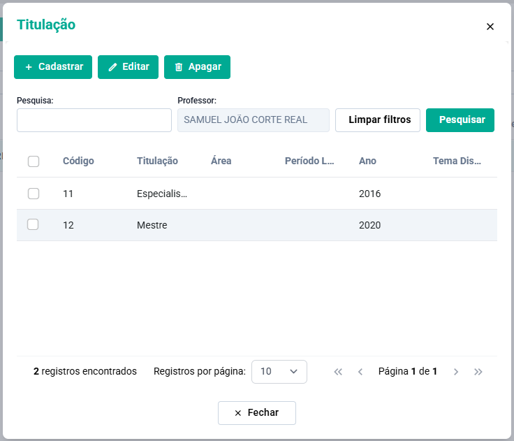 Dessa forma, as titulações serão vinculadas ao cadastro do professor.