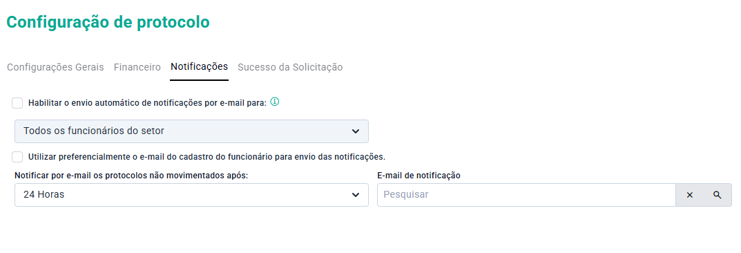 Essa opção é utilizada para realizar o envio de notificações de solicitações de protocolo que estão sem movimentação, verificando sempre pela data de última alteração.