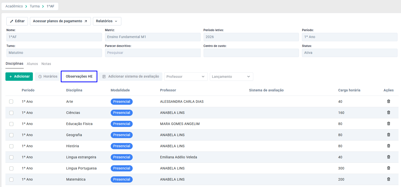 Dessa forma, a observação será adicionada aos alunos da turma.
