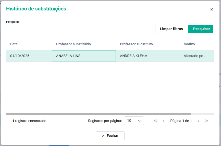 Neste passo, veremos como realizar a substituição, o histórico de substituição de professores e professores auxiliares.