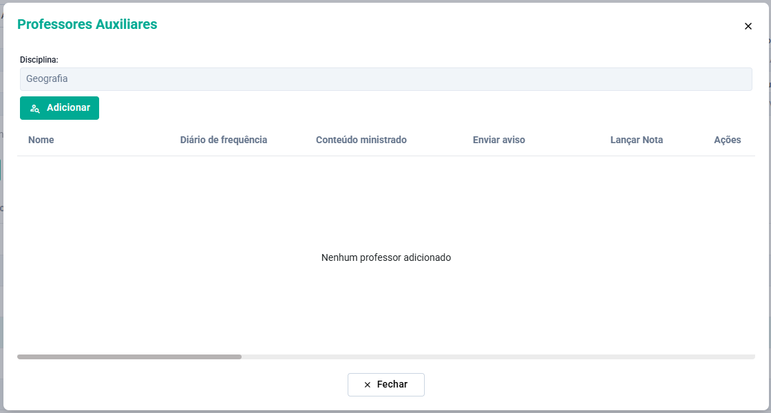 Na Tela de Professores Auxiliares clique no Botão Adicionar.