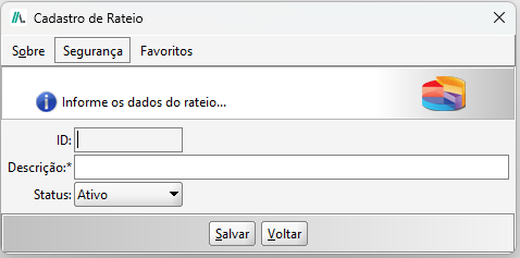 Na tela de Cadastro de Rateio, temos os seguintes campos para preencher: