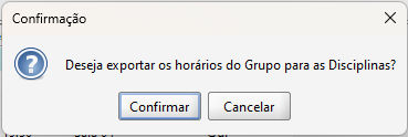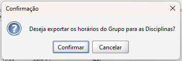Será apresentada uma mensagem de confirmação, se deseja exportar os horários para as disciplinas.