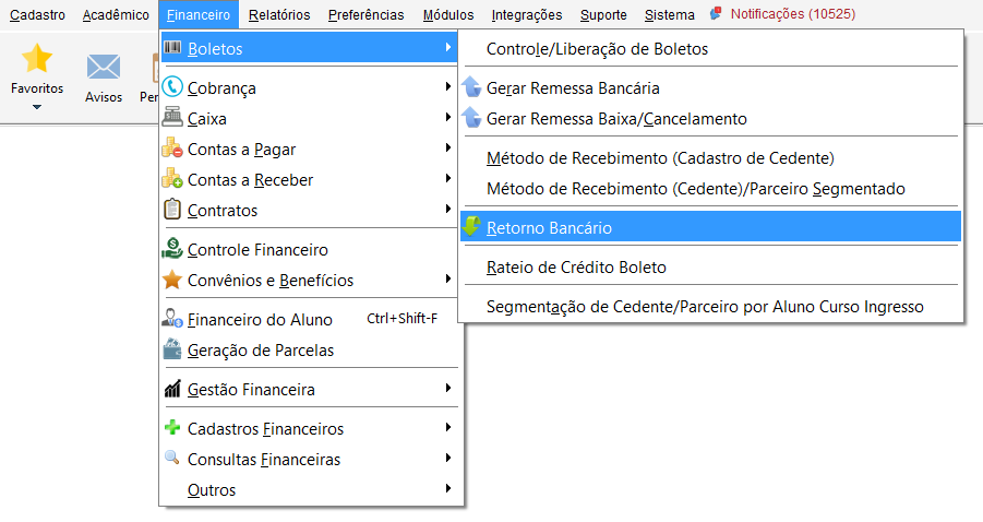 Acesse o menu Boletos e clique em Retorno Bancário.