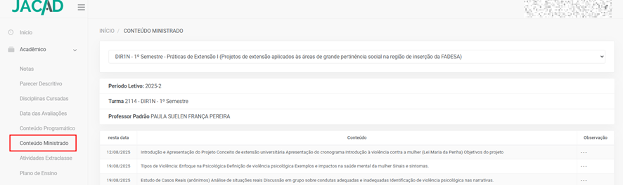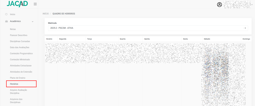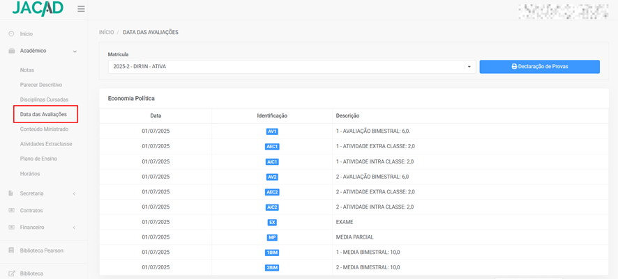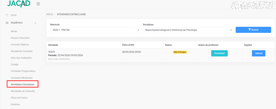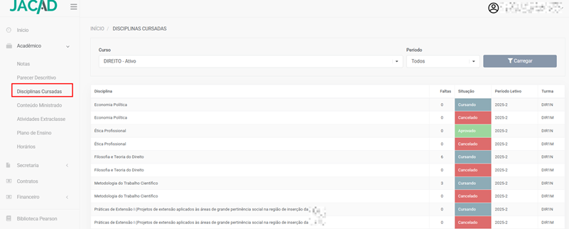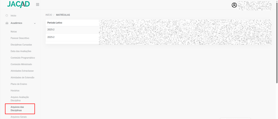 - Disciplinas matriculadas;