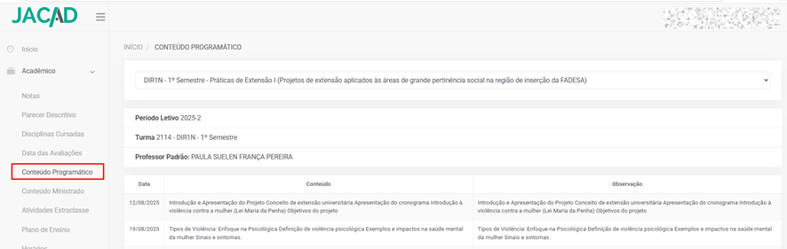- Acesso direto às disciplinas;