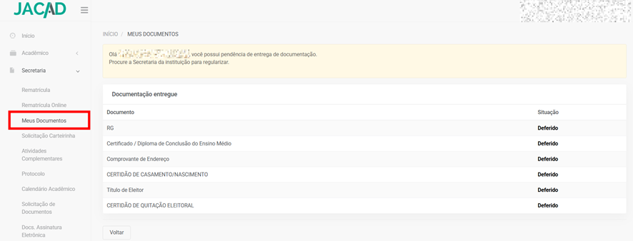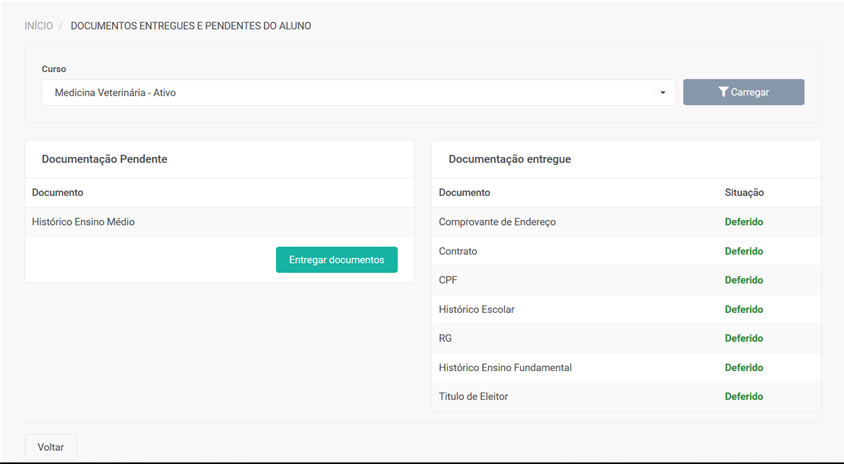 - Documentos pendentes;