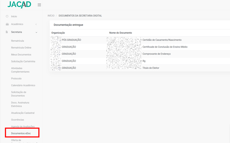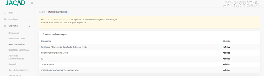 - Situação acadêmica;