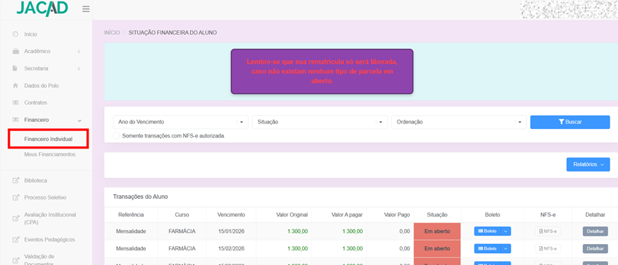 - Melhor integração acadêmica e financeira.
